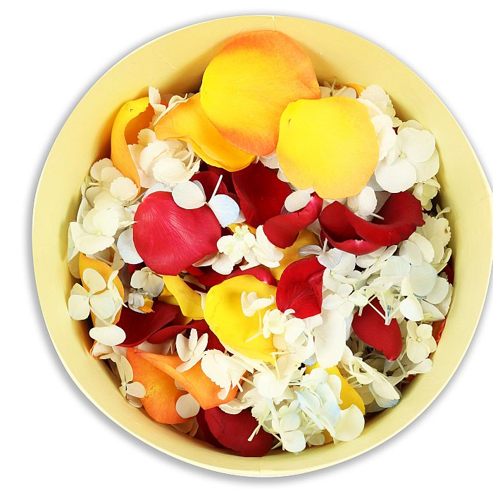 Celebrate life's special moments with our radiant floral arrangement. Expertly crafted, this bouquet marries the enchanting hues of Hydrangea petals, Rose petals, and Chrysanthemum petals to form a symphony of natural beauty. Perfect for gifting or personal indulgence, its lively colors and intricate design speak volumes of elegance.